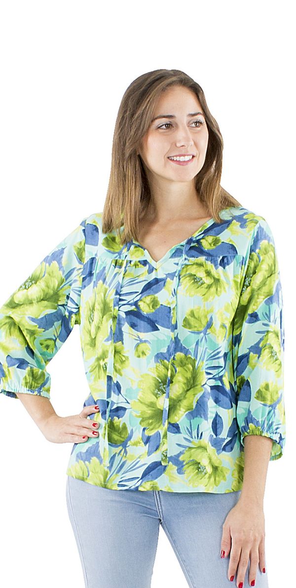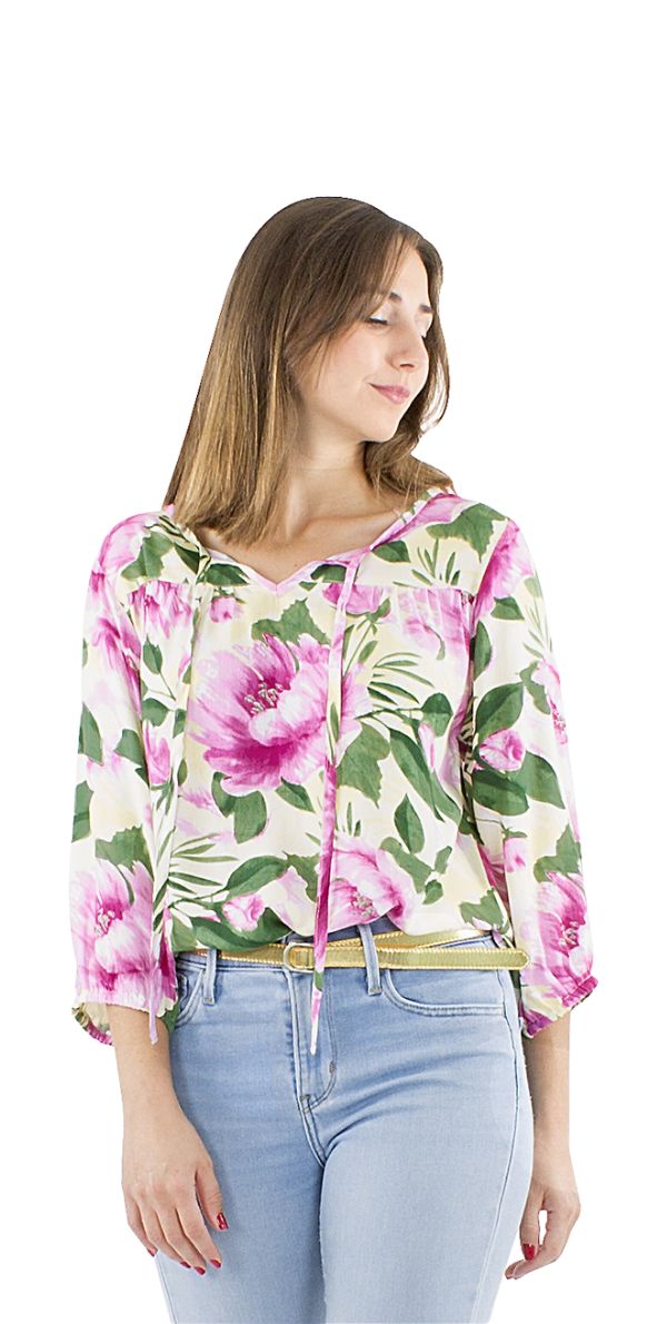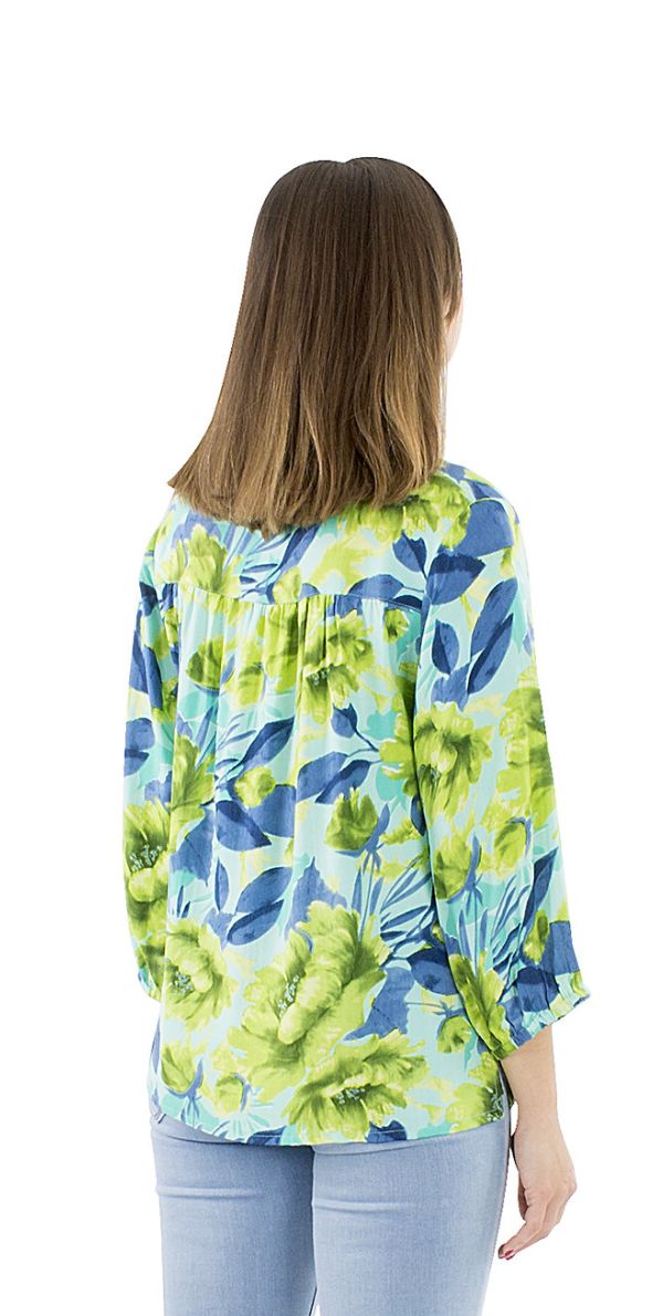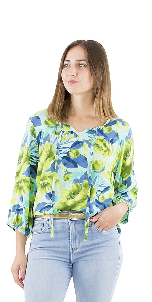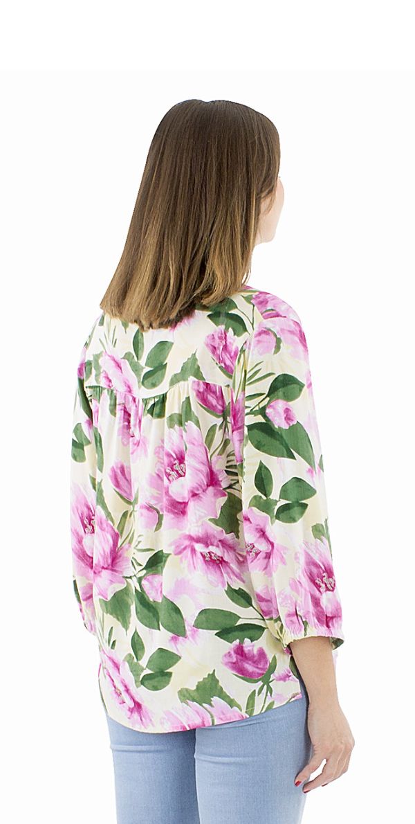 Bluza iz viskoze s tričetrtinskimi napihnjenimi rokavi in elastičnimi manšetami zagotavlja izjemno udobje. Ohlapen kroj omogoča svobodno gibanje in dihanje kože, medtem ko ljubek V-izrez z dvema vezalkama omogoča, da ga zavežete po svojih željah. Na voljo je v velikostih od S do XXL in lepo pristaja različnim postavam.