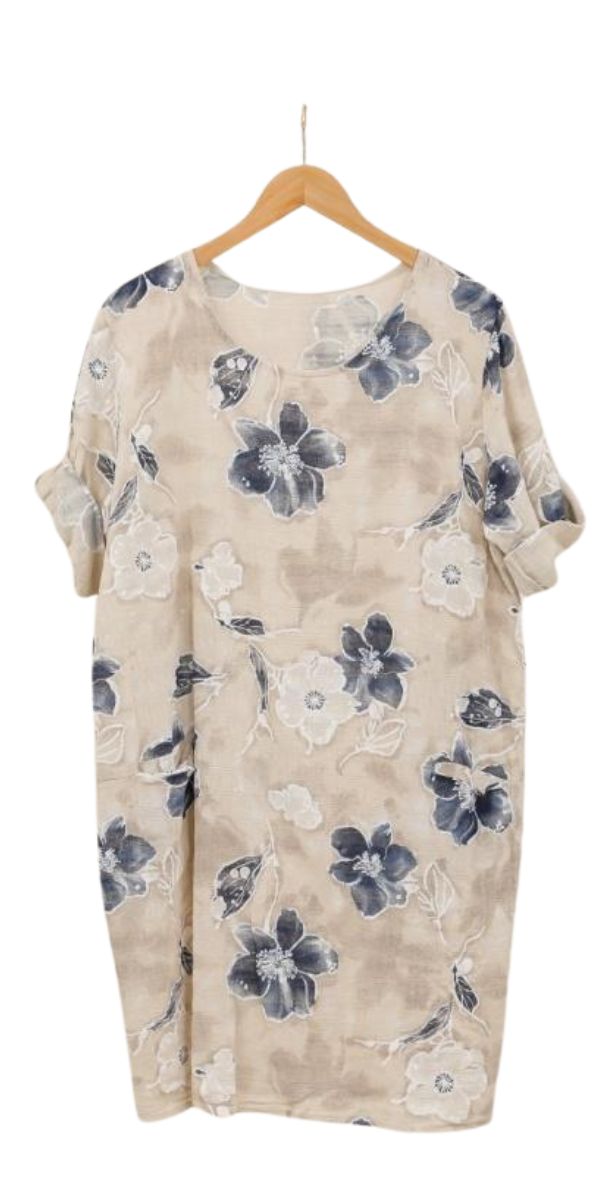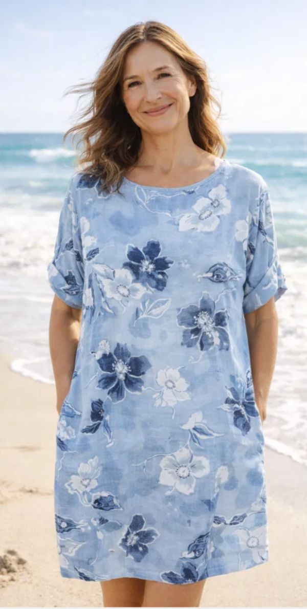Lahkotna in udobna tunika z nežnim cvetličnim vzorcem, idealna za vsakodnevne kombinacije. Izdelana iz 100 % bombaža, zagotavlja prijeten občutek na koži in zračnost skozi ves dan. Sproščen kroj in praktična žepa poskrbijo za brezčasen videz in funkcionalnost. Popolna izbira za tople dni ali sproščene priložnosti.
